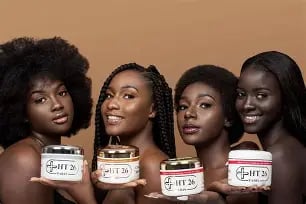 HT26 laboratories created 5 product ranges for black and mixed-race skin, focusing on moisturizing, lightening, treating blemishes, and nourishing without damaging agents.